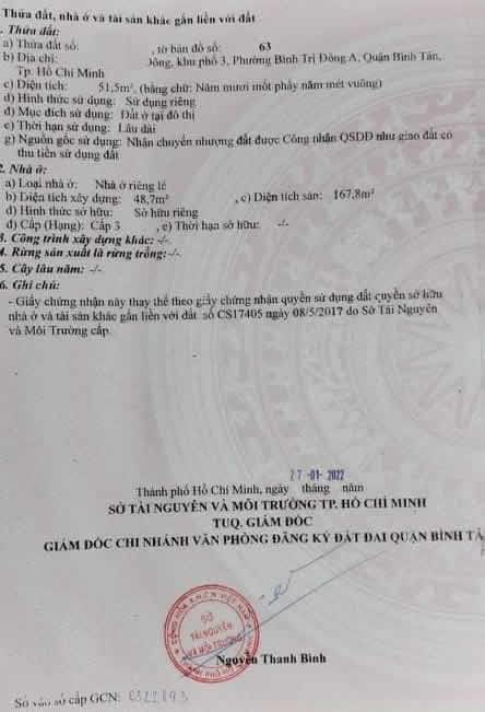 – Khu vực: Khu phân lô dân trí cao hàng xóm hiền lành. Khu trung tâm Bình Tân. trường chợ bệnh viện.