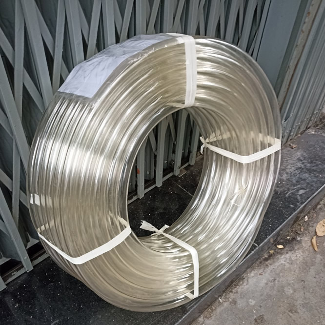 Cuộn ống nhựa dẻo trong 27mm được tạo thành bởi 2 lớp nhựa PVC có chức năng gia cường áp lực tốt.